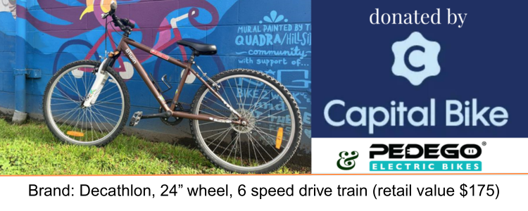 Sign up to volunteer for one or more 2.5 hour shifts during the festival and you’ll be eligible to enter the draw for this bike donated by Capital Bike and the helmet donated by Pedego Bikes. You’ll earn a ticket for the draw for each shift you work on the Jane’s Walk & Roll with Capital Bike event or any other event you prefer. Don’t miss your chance to win!\